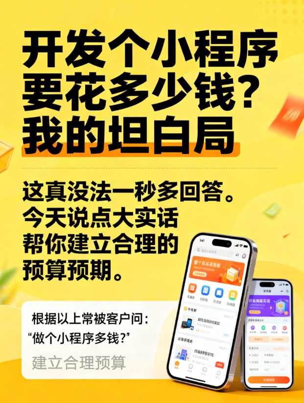 常被客户问:“做个小程序多少钱?”这真没法一秒回答。 今天说点大实话,帮你建立合理的预算预期。 你的钱主要花在哪儿了? 1、产品设计与规划 (值钱的经验) 要把你的想法,变成我这种技术人员能看懂的原型图和需求文档。 这部分做不好,后期返工的成本极高。好的设计能帮你省下大笔开发费。 2、具体功能开发 (核心成本) “有没有用户中心?” - 这背后是无数行代码。 “能不能在线支付?” - 这需要和微信支付打通,复杂且要保证安全。 功能越多、逻辑越复杂,需要投入的时间和精力就越多,成本自然越高。 3、服务器与后期维护 (隐藏的成本) 小程序不是开发完就没事了。它需要服务器来运行,用户越多,服务器成本越高。 微信官方会更新,系统可能会有小Bug,需要我持续进行维护和技术支持。 我的建议: 别只看总价。要问清楚:“这个价格,具体包含了哪些功能?交付周期是多久?包含多长时间的售后?” 和我沟通,我会帮你: ① 梳理核心功能,把钱花在刀刃上。 ② 提供透明的报价清单,每一分钱花在哪都清清楚楚。 ③ 规划发展阶段,初期先用最小成本验证市场。